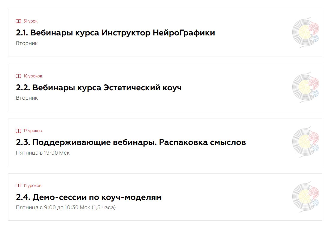 | | | | | На курсе вы не останетесь один на один со сложностями, вам всегда могут помочь кураторы на супервизии, преподаватели своим примером на демо-сессиях. А ещё мы специально ввели поддерживающие вебинары «Распаковка смыслов Алгоритмов НейроГрафики». | | | | | | | Как статус Инструктора влияет на жизнь?- Вы начинаете замечать: привычные вызовы становятся вдохновляющими задачами.