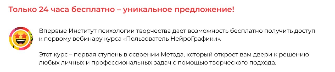 | | | Что вы получите:- Первую настоящую практику НейроГрафики — уже на этом занятии начнёте менять своё состояние.