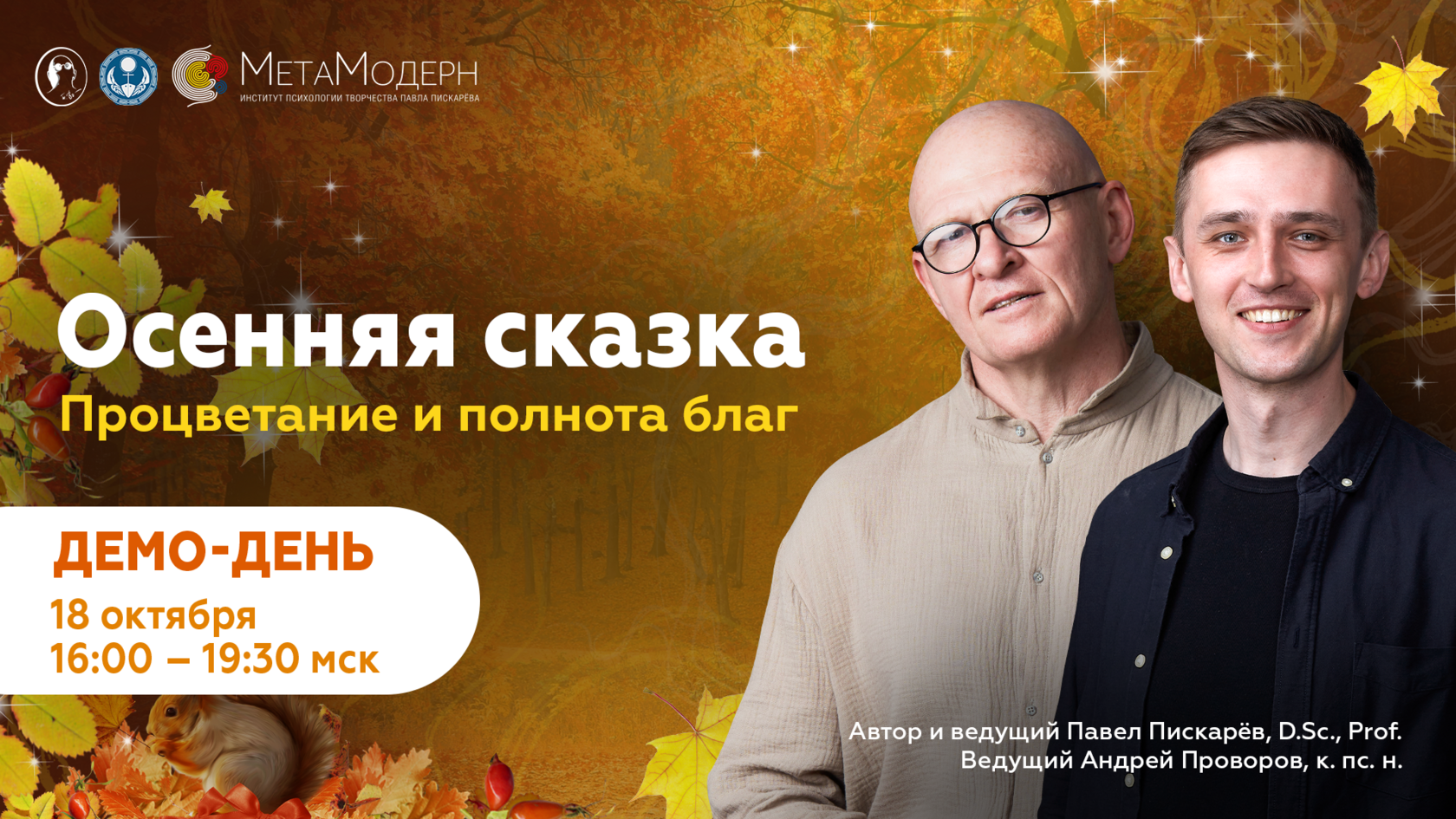 - 16:00 – 17:00 – Андрей Проворов, к.п.н., «Осенняя Сказка. Процветание и полнота благ»