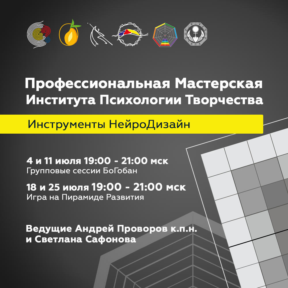 Ваша Олеся Панкова, редактор ИПТ и команда Института Психологии Творчества. | | | | | | | | | 21-23 июля, 12.00 мск Институт Психологии Творчества приглашает на трёхдневный фестиваль! Самое яркое событие лета, полное встреч, обнимашек, улыбок и рисования! Летний фестиваль - это поле общения, заряд драйва, творчество и невероятное количество новых знакомств и впечатлений! | | | | | НейроСказ. Летнаяя сказка | | 22 июля, 19.00 мск Сказки Мастера Бо – чудесные сказки и алхимические превращения с духовной энергией о принципах жизни в волшебном мире, который существует в реальности. Соотнести личную историю с действительностью, исправить свою реальность, внести магический контекст и жить как в сказке. | | | | | Чувство цвета. Связь цвета и настроения | | 23 июля, 12.00 мск Проект АртПодготовка - это формат практических мастерских, где мы совмещаем творческие инструменты и подходы школ Института для раскрытия творческого потенциала и проработки личных запросов. | | | | | | | | 24 июля, 22.00 мск Мы приглашаем вас почувствовать свой бесконечный ресурс через потоковое дыхание и расширить сознание, используя НейроДинамические принципы. Участие бесплатно! | | | | | События и люди: настройка поля бытия | | 25 июля, 9.00 мск Каждый понедельник мы встречаемся по утрам с Автором метода Нейрографика Павлом Пискарёвым и проводим графическую настройку на неделю. | | | | | Иструменты НейроДизайн. Игра на пирамиде развития | | 25 июля, 19.00 мск Игра это сознание своей ЛИЧНОЙ СИЛЫ и глубокое понимание того, как вы действуете в пространствах достижения желаемого. Вы можете прийти на игру с любым личным запросом (отношения, бизнес, здоровье, финансы и т.д.) и озвучивать его в той степени, в которой вам комфортно. | | | | | | | | 25-27 июля, 12.00 мск БоГобан – инструмент для избранных, которые чувствуют в себе силу менять себя и менять этот мир. Это и теория, и инструмент качественных изменений, который может стать вашим помощником для настройки на любую жизненную ситуацию. Участие бесплатно! | | | | | Демо сессия МАНГо Профессионал | | 26 июля, 10.00 мск Демонстрационная сессия – это сессия работы с клиентом, которую проводит опытный Инструктор НейроГрафики и Эстетический коуч с «теплым» клиентом – тем, кто уже знаком с методом НейроГрафика, слышал о нем и имеет некоторую практику рисования с последующим супервизионным анализом и обсуждением в контексте профессиональных компетенций МАНГо. | | | | | Среда на подушках. Дзен медитация | | 27 июля, 22.00 мск Мы приглашаем вас почувствовать свой бесконечный ресурс через потоковое дыхание и расширить сознание, используя НейроДинамические принципы. Участие бесплатно! | | | | | | | Всем счастья и до новых встреч!