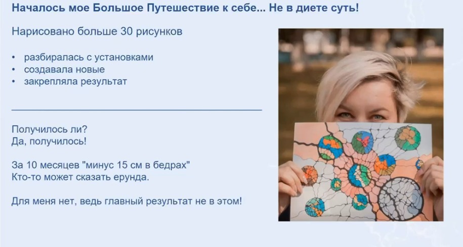 В какой-то момент ко мне пришла НейроГрафика, и я начала рисовать путь, который оказался достаточно долгим. За 10 месяцев я похудела на 16 килограмм! Кто-то может подумать, что это не очень большой результат, но для меня он ощущается грандиозным, потому что изменилось моё внутреннее состояние. | | | Главная ценность результата для меня не в цифрах на весах, а в том, что я разорвала порочный круг отношений с едой. Я не скучаю по сахару, по сладостям, стала в разы меньше есть. Теперь еда для меня – это топливо.