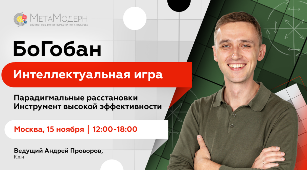 {first_name delimiter="," word="приветствуем"}! Вам знакомо чувство бега по кругу? Дом, работа, дети, снова дом... Вы пытаетесь все успеть, жонглируете сотней задач, но к вечеру вместо удовлетворения испытываете только усталость.Разговоры с подругами или попытки отдохнуть в выходные уже не заряжают. Привычные ритуалы, которые раньше помогали, больше не работают, а как по-новому выстроить свою жизнь, чтобы в ней была не только суета, но и удовольствие, — непонятно.❗ Эти состояния показывают, что старые стратегии исчерпали себя. Чтобы найти новый баланс, нужен инструмент, который поможет:• взглянуть на свою рутину свежим взглядом,• увидеть, где вы теряете энергию,• вернуть себе ощущение контроля.✈️ Мы приглашаем вас на живое событие в Москве — «БоГобан. Интеллектуальная игра». Это пространство, где вы сможете увидеть свои привычные сценарии со стороны и найти те самые шаги, которые вернут вам легкость и уверенность.БоГобан — авторская коуч-модель Павла Пискарёва, которая помогает найти ответы там, где привычные решения больше не работают. Во время игры вы не просто думаете — вы действуете:- делаете реальные шаги по большому игровому полю, где каждый ваш ход — это точное отражение ваших жизненных стратегий, ошибок и скрытых ресурсов.