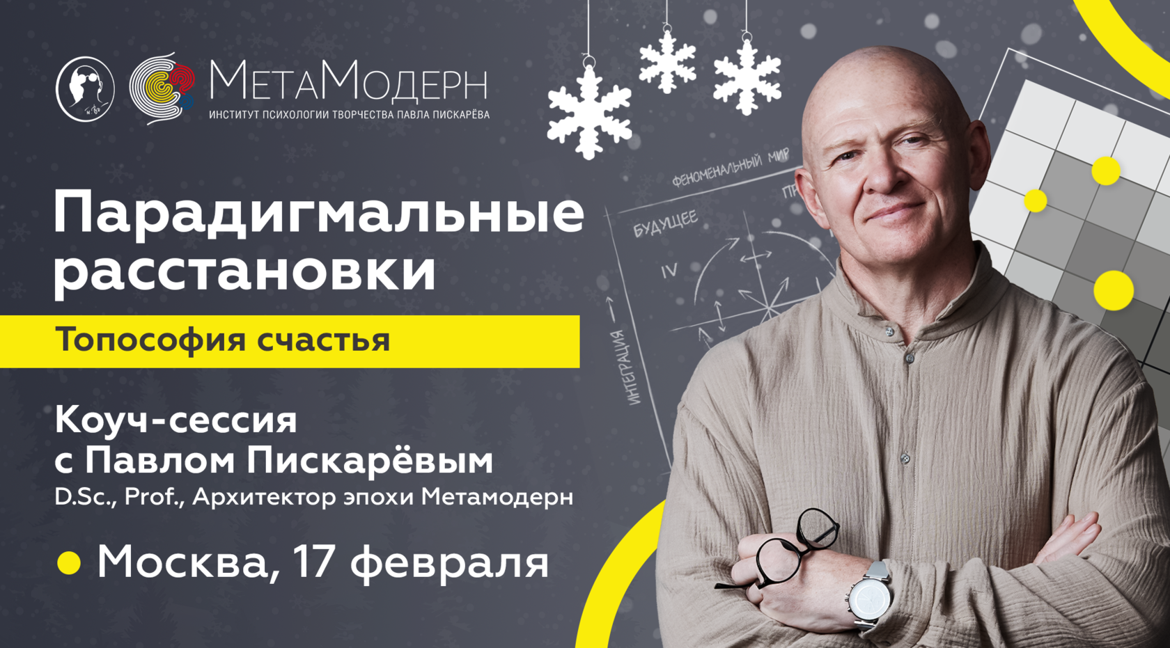 ✨Всё это вам подарит проект «Я – мягкая сила. 40 оттенков розового»! Живая встреча с Павлом Пискарёвым и 8 часов захватывающей игры со своим женским внутренним миром. Это то, что вам нужно! Приходите и узнайте, на что на самом деле способна женская сила и элегантность! Вас ждут профессиональные фотографии ведущего фото-художника Москвы Валентина Золотухина и фуршет с шампанским. Дата проекта: 11 февраля.Место: Москва Дресс-код: Барбикор! Всего 16 мест, половина уже распродана! | | | | | | | | Личная коуч-сессия с Павлом Пискарёвым! | | | Для тех, кто давно мечтал попасть в поле Мастера, приглашаем вас на встречу «Парадигмальные расстановки. Топософия счастья», каждого участника ждет индивидуальная работа. Ценность Парадигмальных расстановок в том, что: - это тонкая и глубокая проработка внутренних тем в любой области вашей жизни – как в личной, так и в профессиональной;